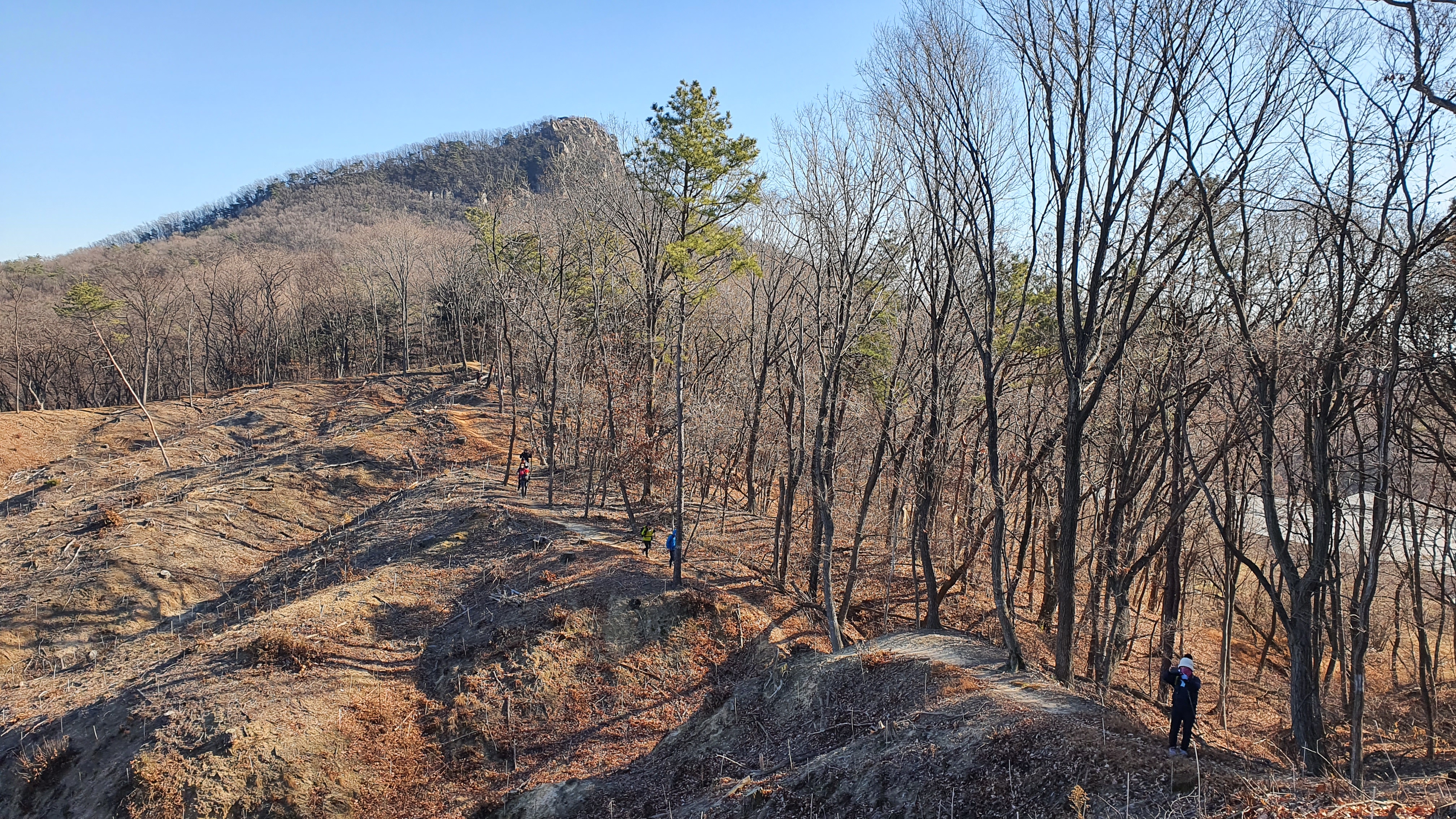 산에 나무를 다 비어버리고 다른 묘목을 심었네요.