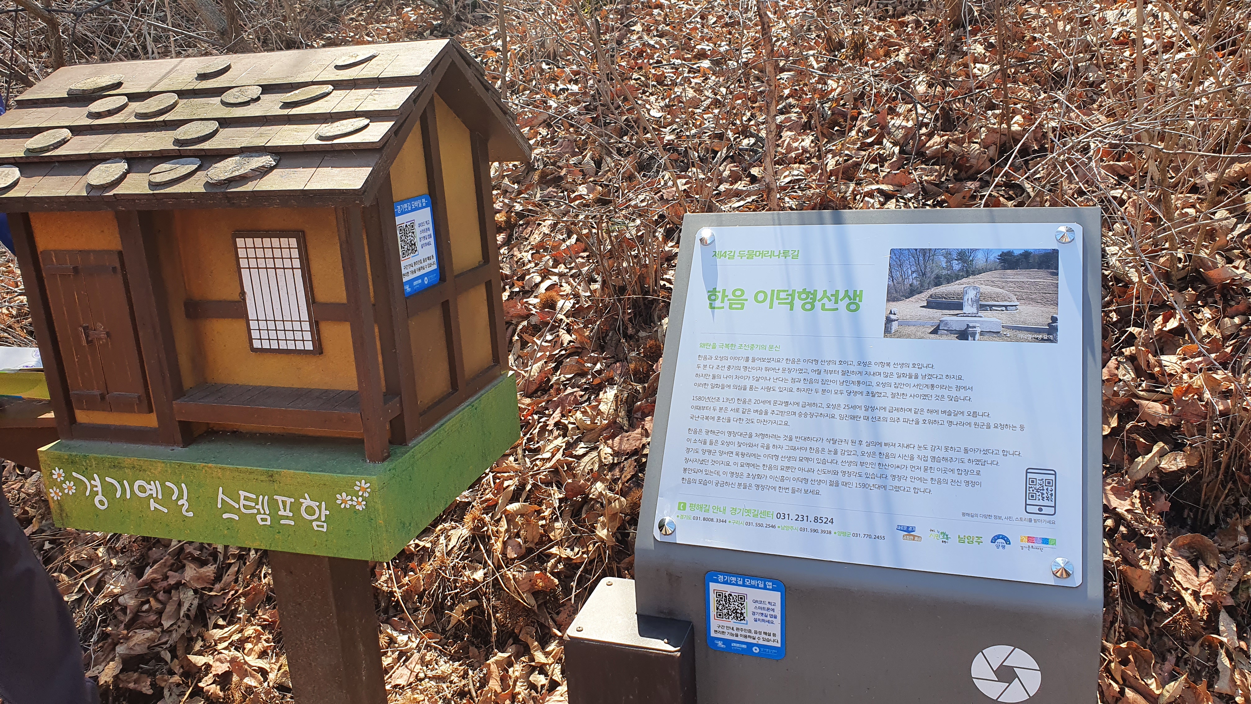 치유되는 느낌입니다. 특히 한음 이덕형 선생과 어운형 선생의 숨결도 느껴볼 수 있는 길입니다.