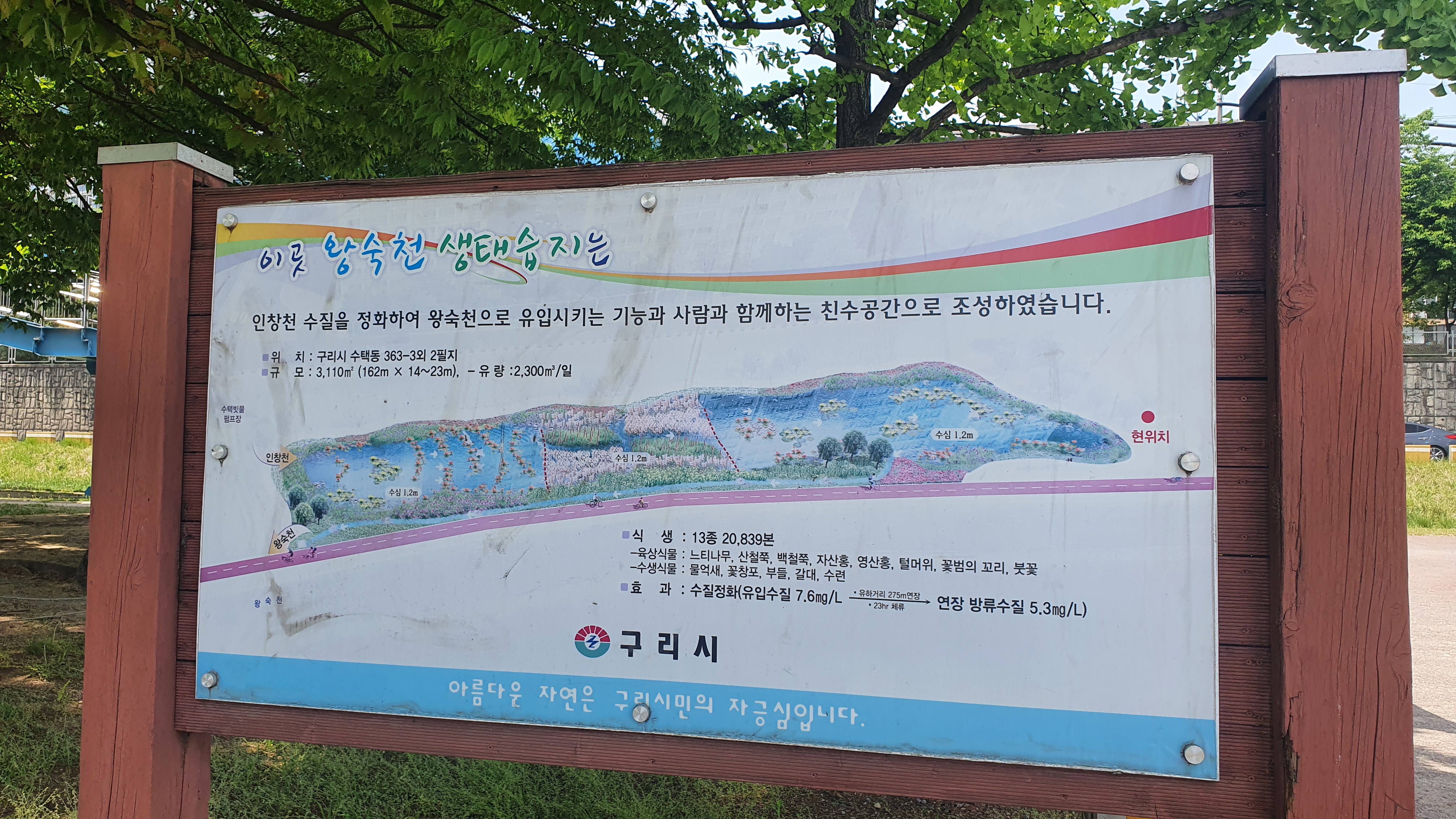 구리역에서 나오면 뒤쪽으로 공원 있는 곳으로 왕숙천을 갈 수 있다.