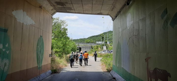 동굴(지하통로)을 2개 건너서 도드람산 산행 입구에 도착, 이천휴게소 밑으로 통과해야 한다.