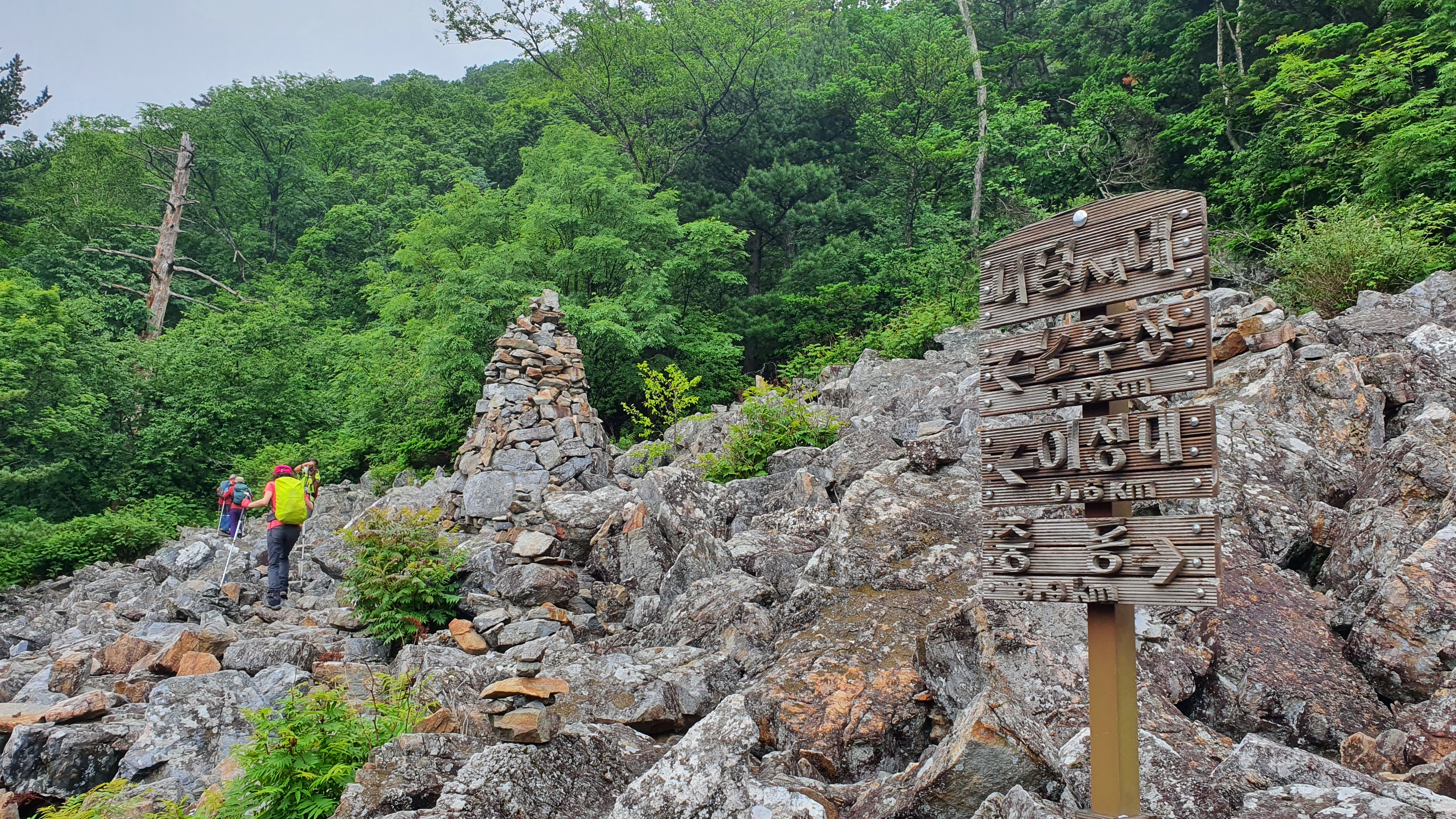 가파르게 산길을 오르다 너덜지대에서 불어오는 바람에 땀을 식히며, 맛난 점심도 먹고, 밀려오고 가는