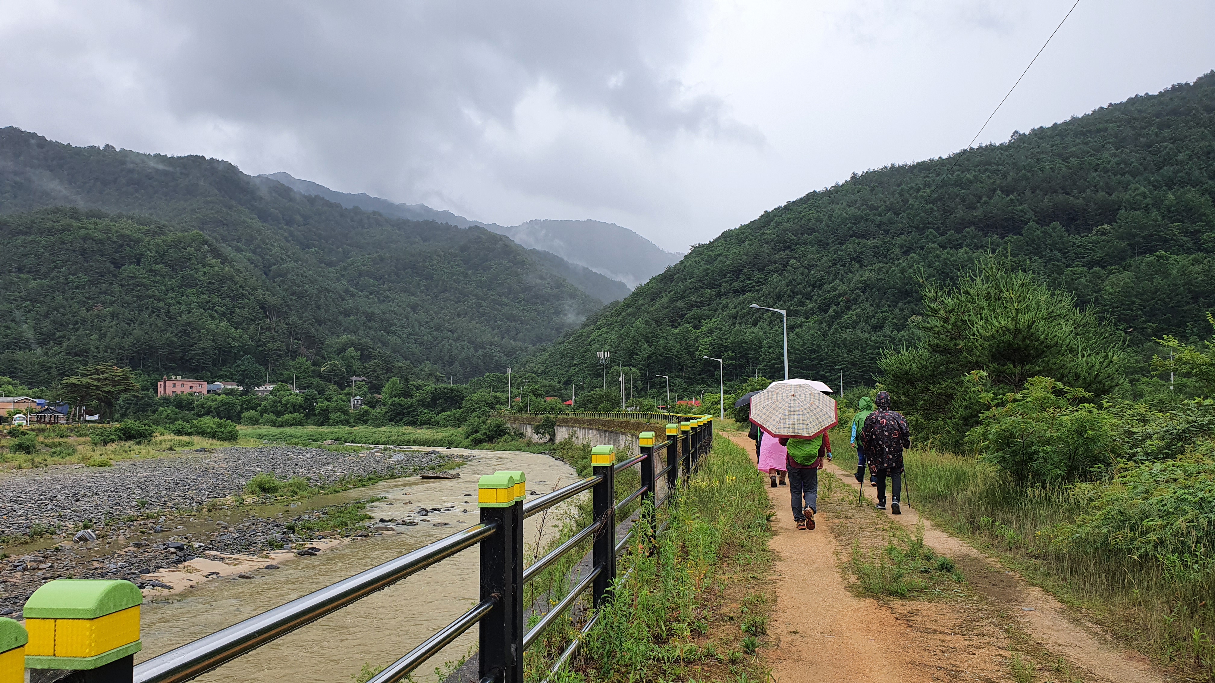 조금 걸으면 비가 그치고, 땀으로 목욕을 하고, 우비를 벗으면 다시 비님이 오시고, 하루 종일 입었다