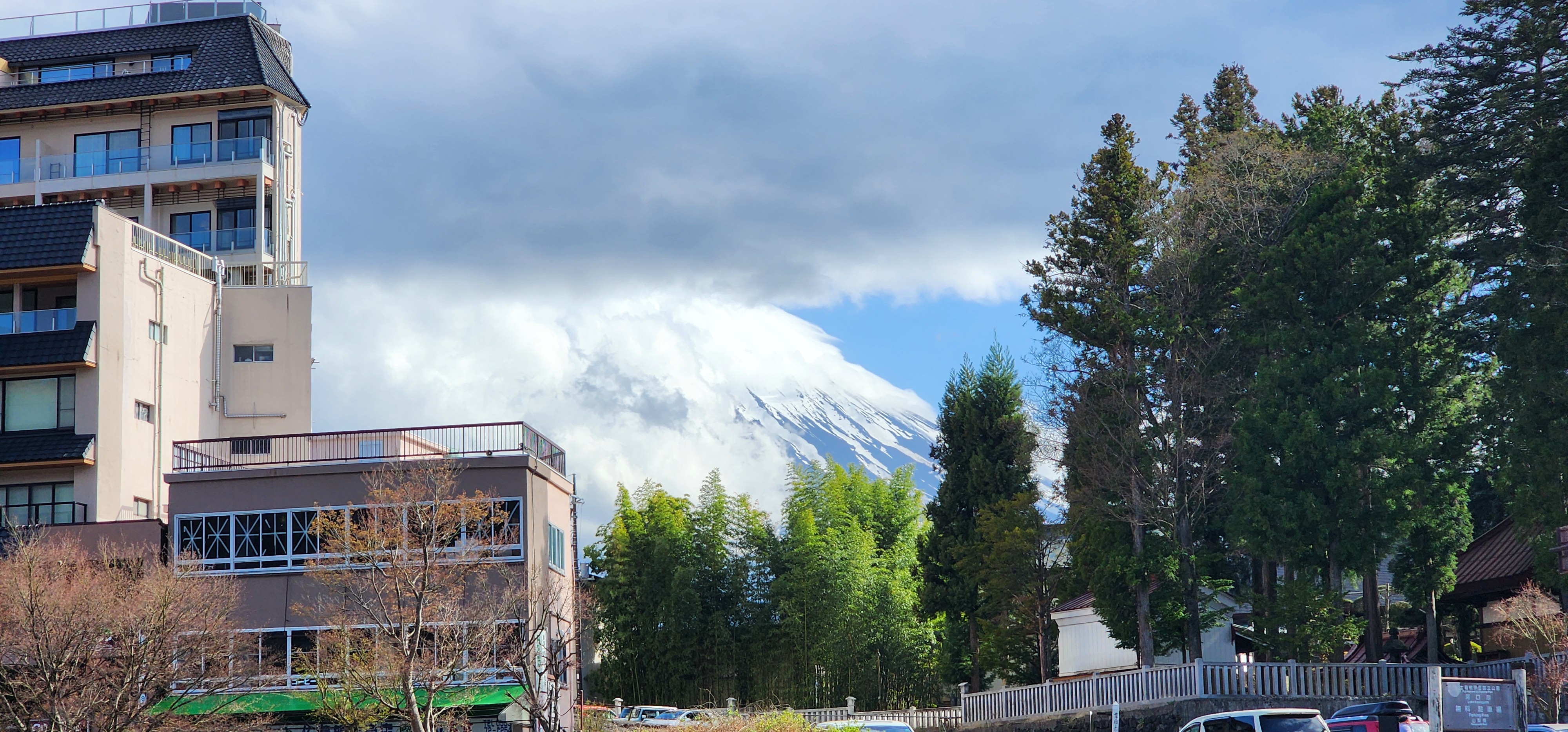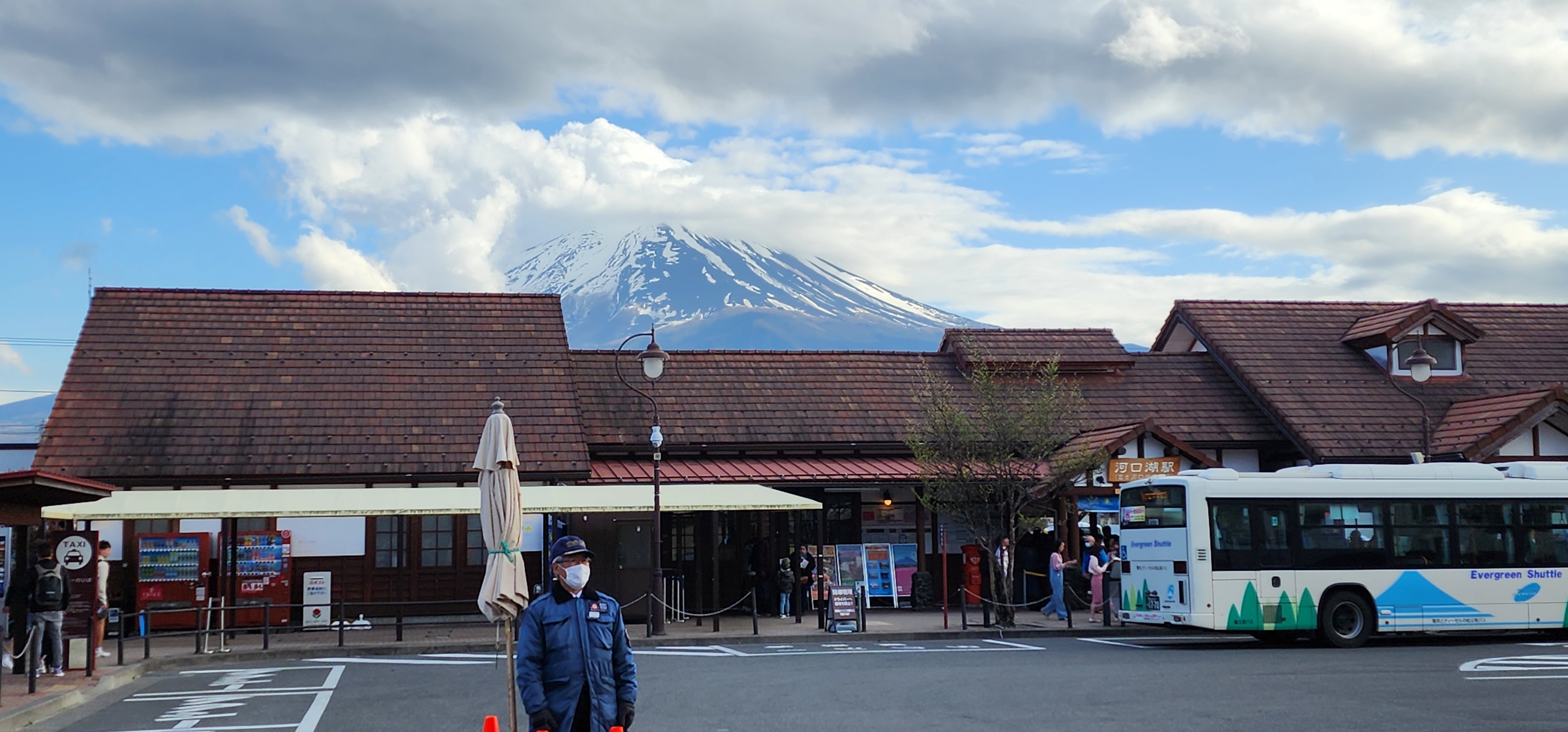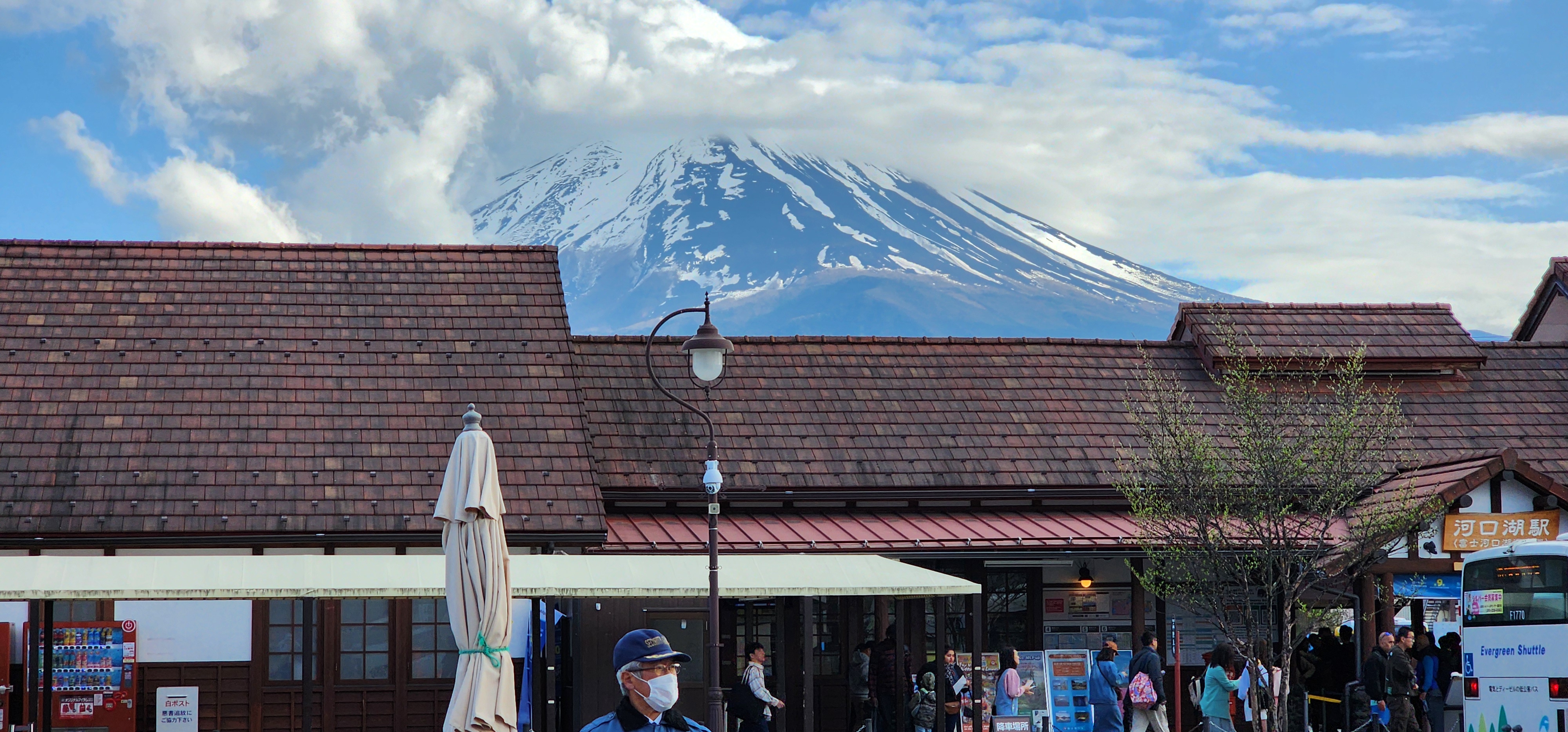 가와구치코역이 멀었는데도. 후지산이