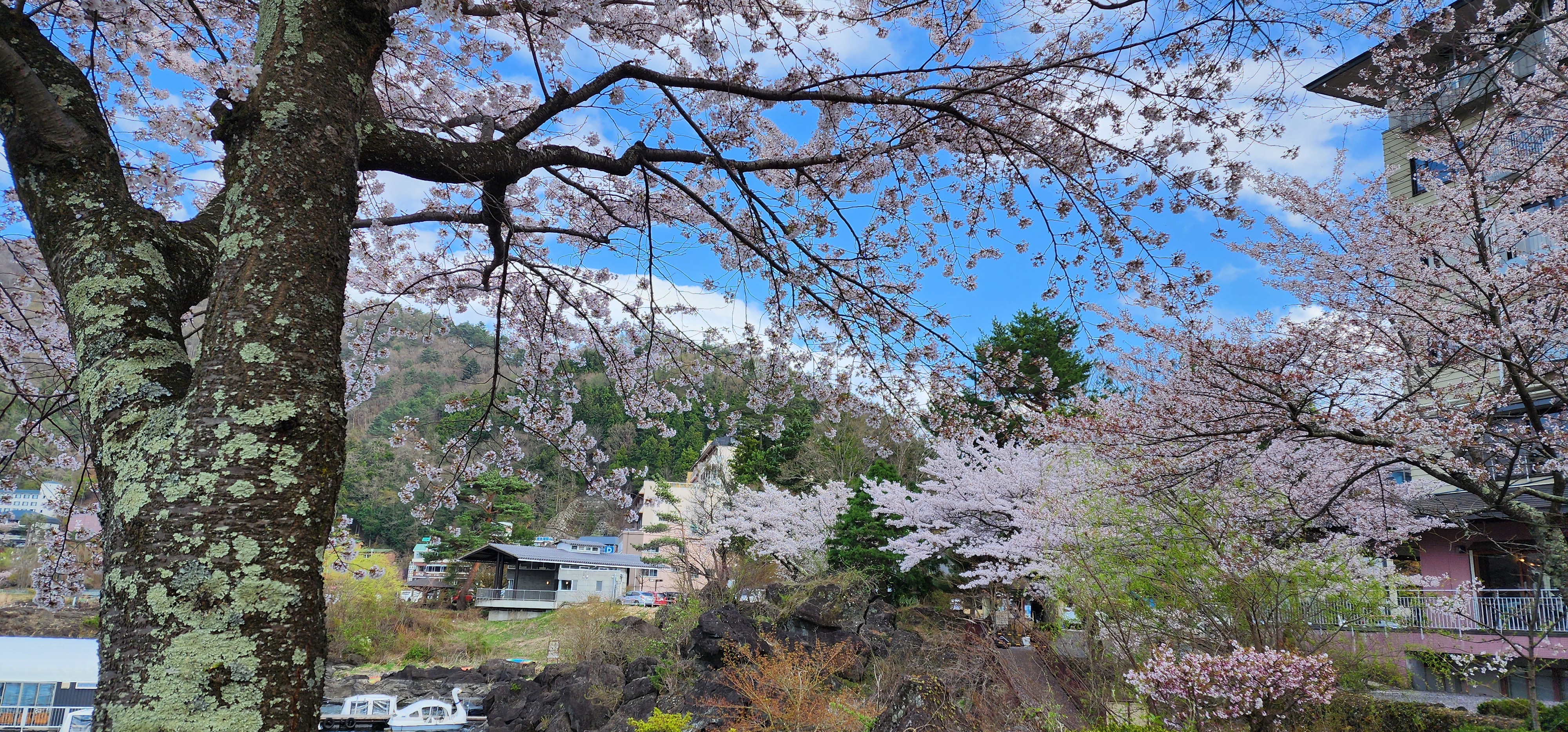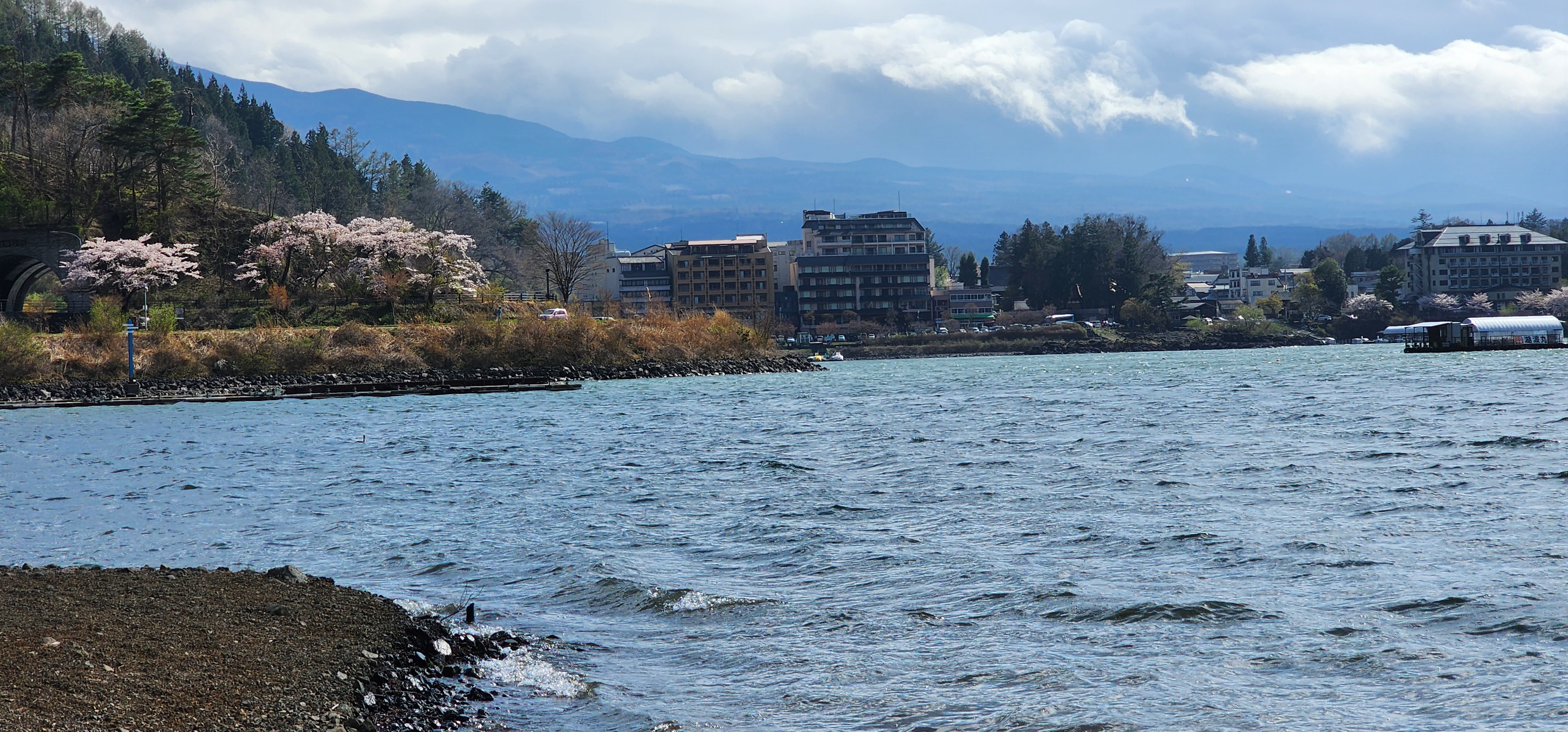 걸어서 가와구치코호수 쪽으로 이동